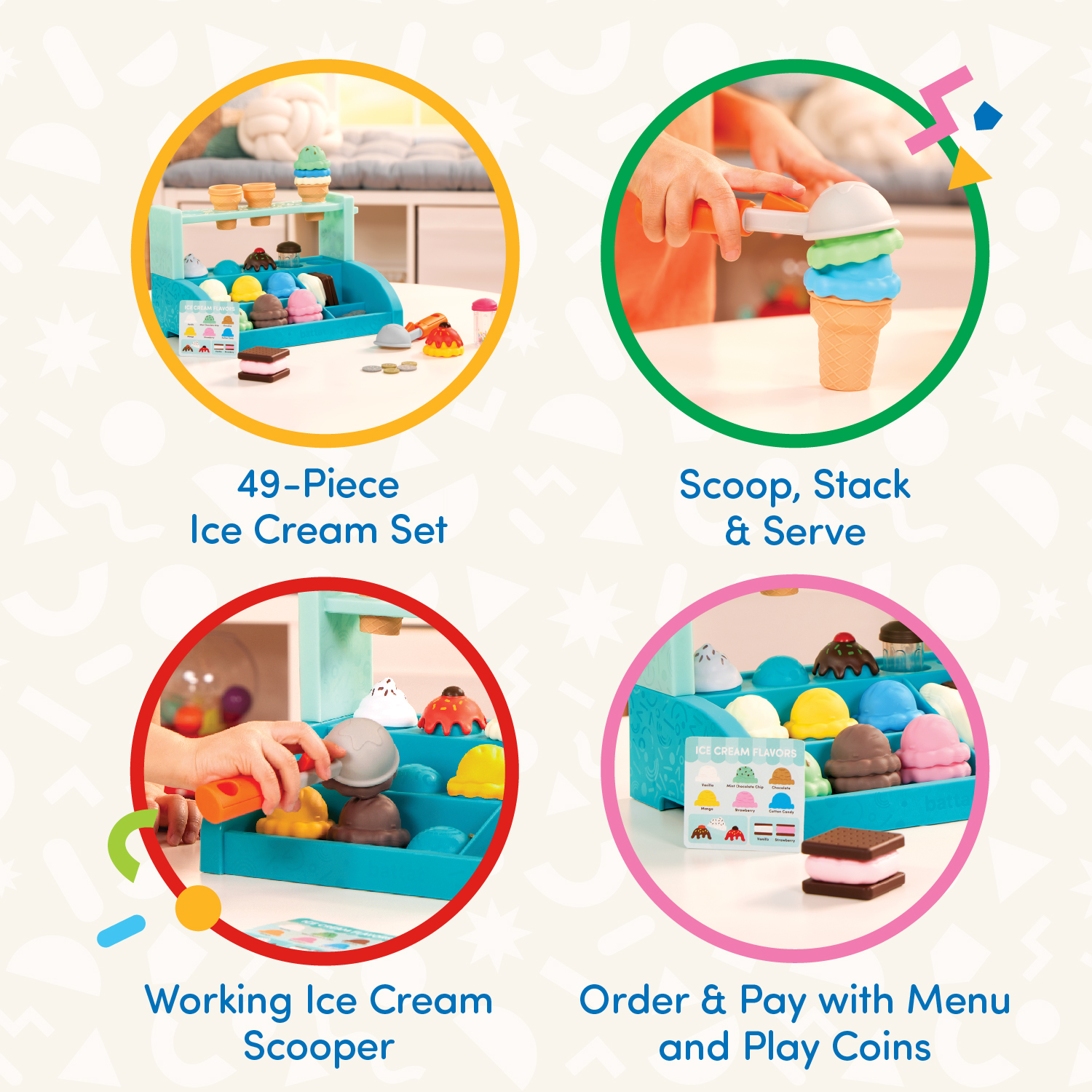 Scoop & Stack: Server iskold is, der aldrig smelter, med et is-sæt til børn med over 40 dele!