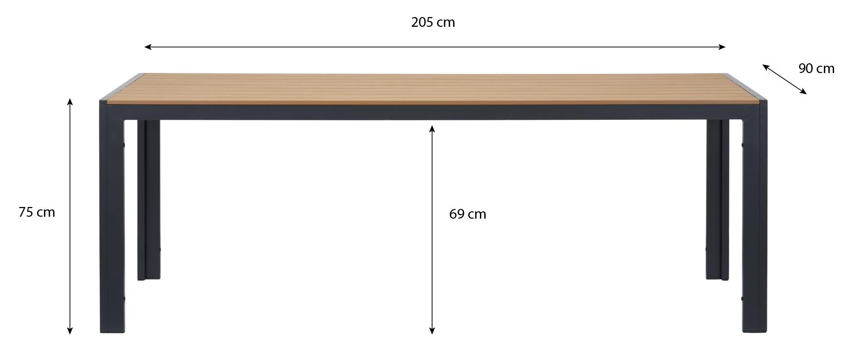 Alu stel med nonwood bordpladeL: 205 x B: 90 x H: 75 cm