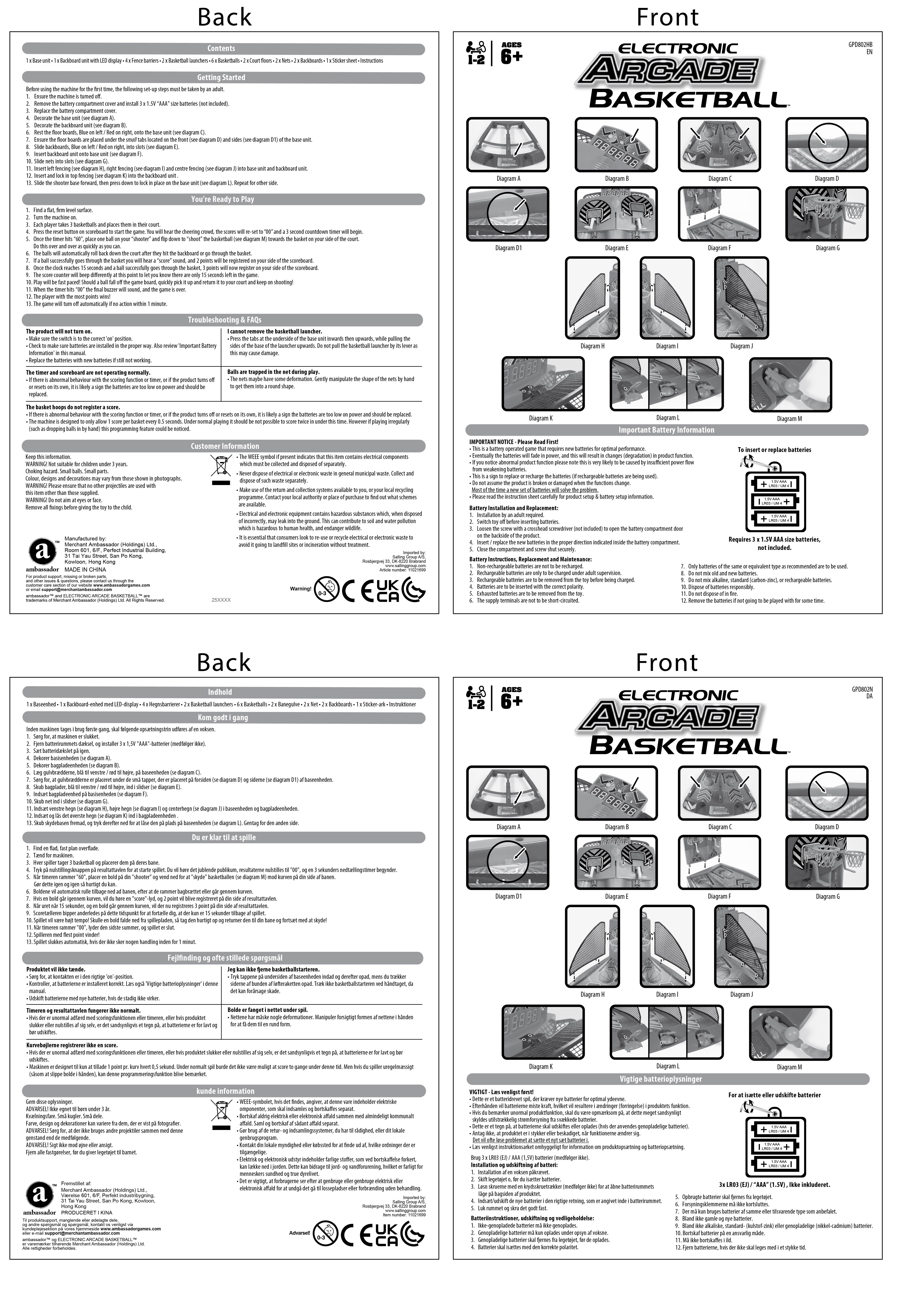 Bring spændingen og adrenalinen fra arkaden hjem med Elektronisk Arkade Basketball! Dette bordbasket er uendelig sjovt for alle aldre. Opsætningen er hurtig og nem: tænd det, tryk på knappen, og det er tid til at spille! Konkurrer mod venner eller prøv at slå din egen rekord - ligesom i arkaden. Kør mod uret for at score så mange point som muligt på 60 sekunder. Den glatte fjeder-drevne basketball-launcher muliggør hurtig skydning, mens den automatiske pointtæller holder styr på din score. I de sidste 15 sekunder er kurve værd 3 point, så skynd dig og sink så mange som muligt for at vinde inden signalet lyder! Har farverige hyper-neon grafik og fede lydeffekter!