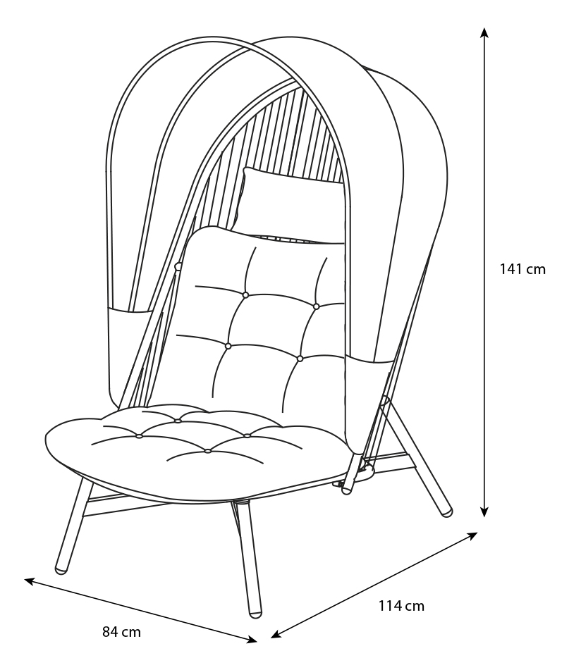 Flot og moderne baldakin stol. Ennits er helt perfekt til afslapning eller at læse en god bog. Der medfølger både ryg- og sædehynde som skal være med til at sikre den maksimale sidekomfort. Når vejret ikke er til udendørs hygge, anbefales det at hynderne opbevares et tørt sted.
