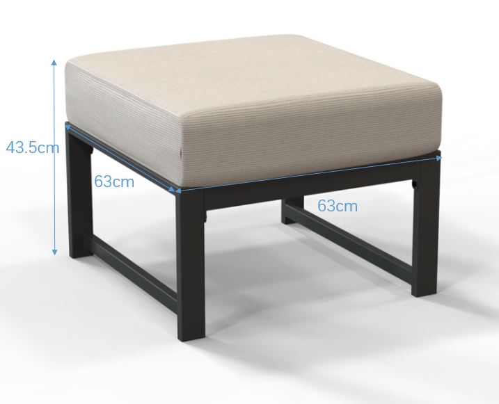 Marinella fodskammel er en komfortabel fodskammel, der også kan anvendes som puff i Marinella serien. Marinella lounge serien er en moderne og stilren serie, hvor der er mulighed for at kombinere produkterne i hele serien, så det passer ind til pladsen i haven. Stellet er i kraftig sort aluminium, der gør at produkterne er lette at flytte og samtidig vedligeholdes fri. Hynderne er slidstærke og komfortable da de er 14 cm tykke.