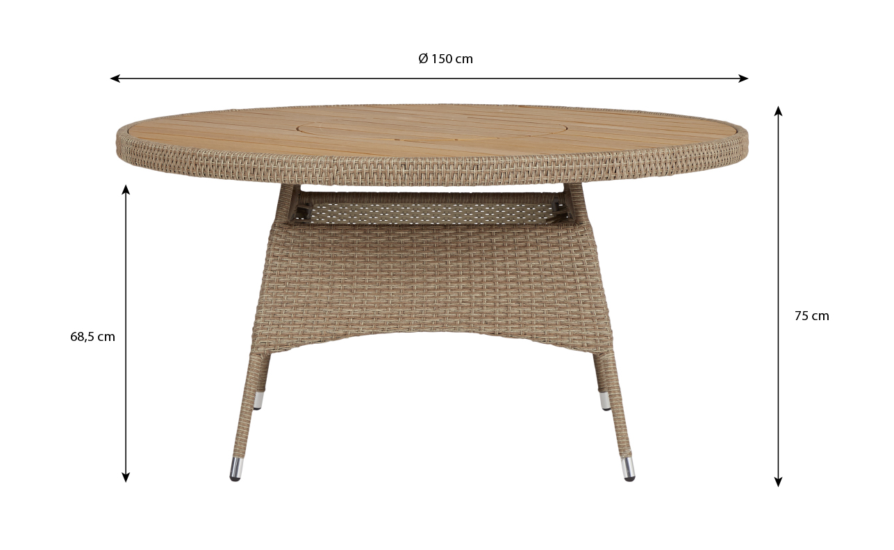Bordet måler Ø: 150 cm.
